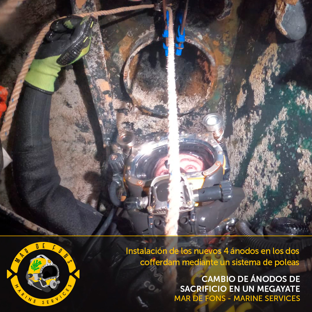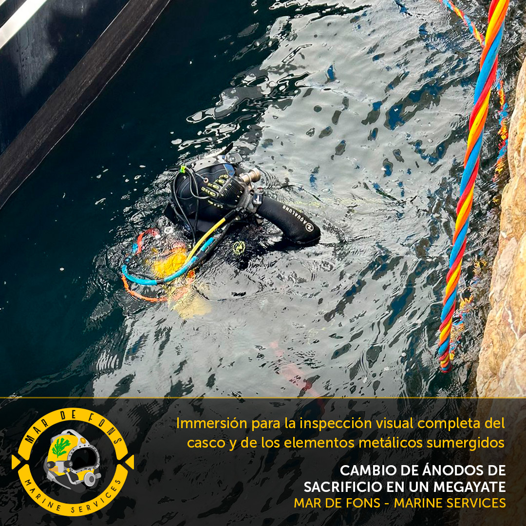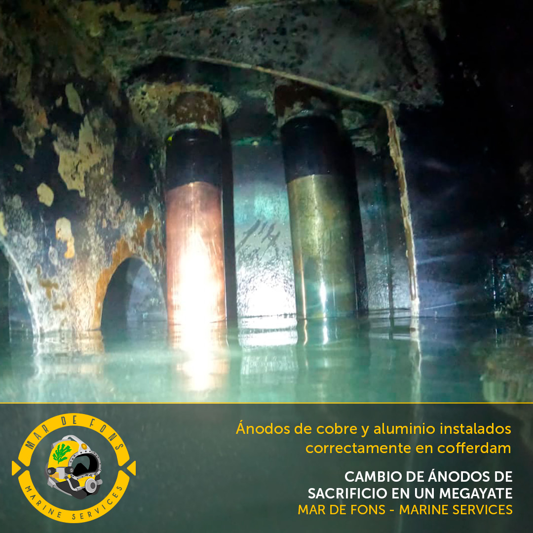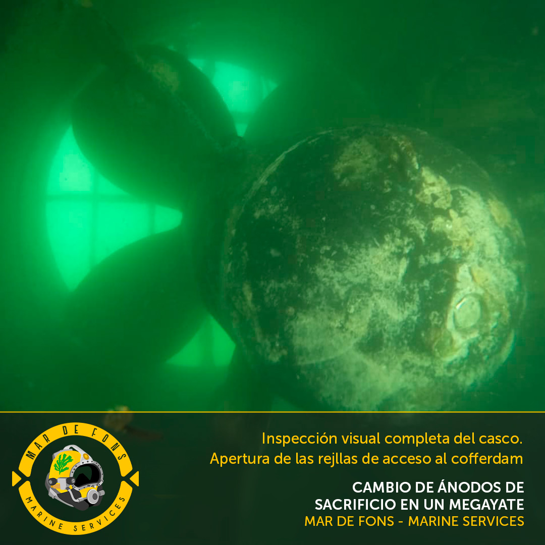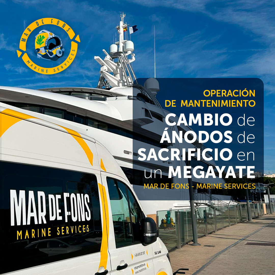 En Mar de Fons – Servicios Marítimos hemos llevado a cabo los trabajos de sustitución de ánodos de sacrificio en un megayate, los ánodos de la corriente impresa, con el objetivo de minimizar los desgastes por corriente galvánica. Una operación clave para la protección catódica del casco y de los elementos metálicos sumergidos, garantizando la integridad estructural de la embarcación.