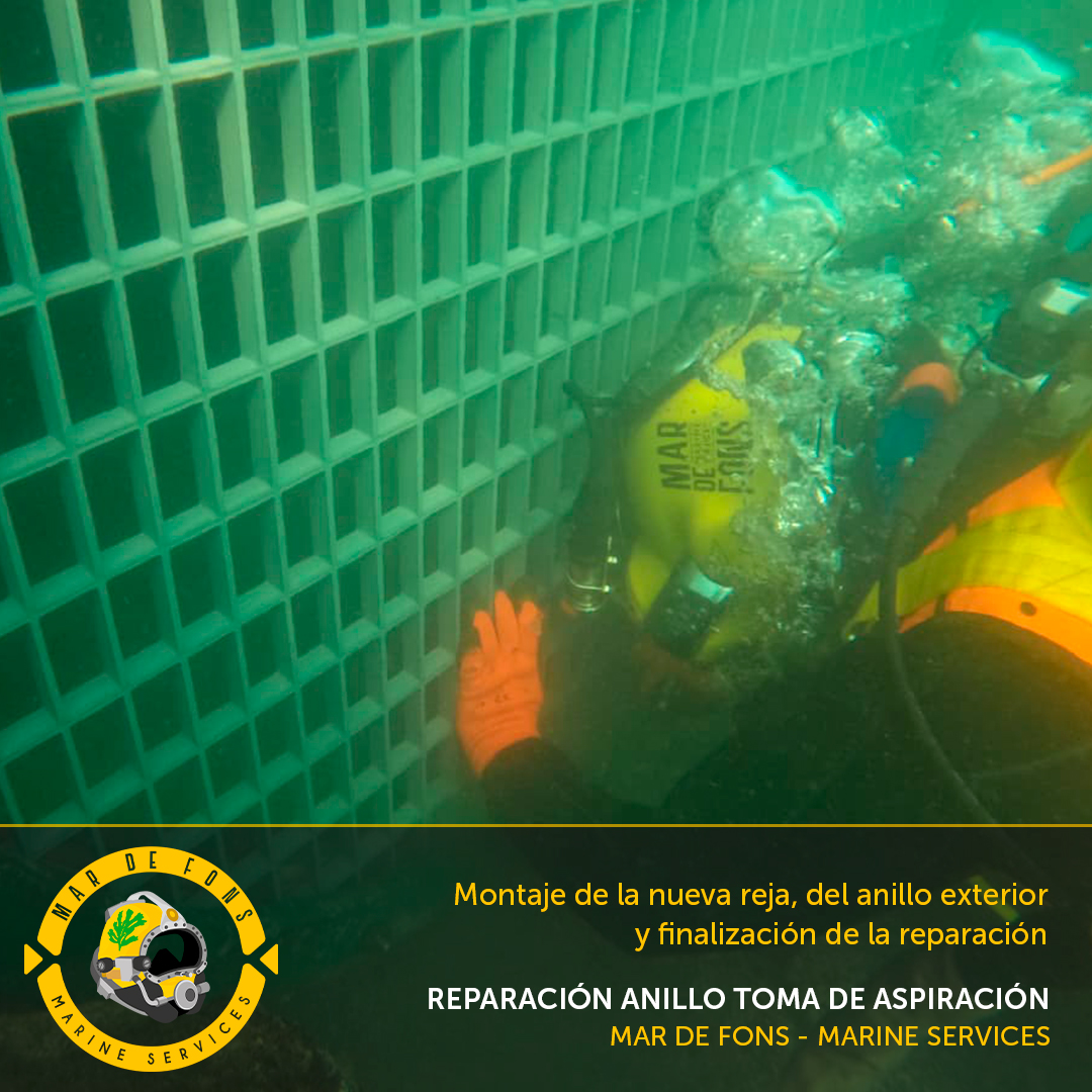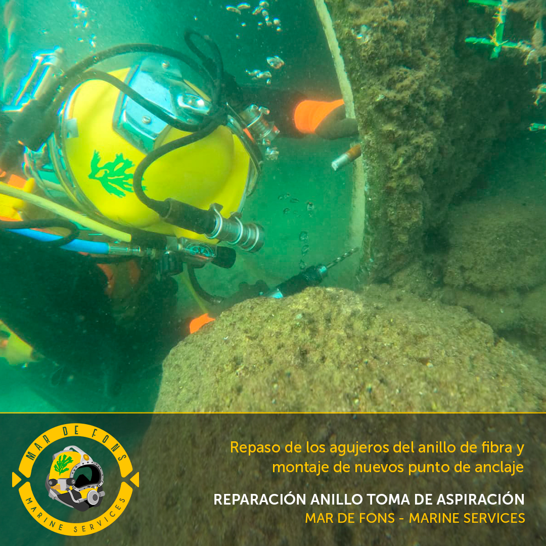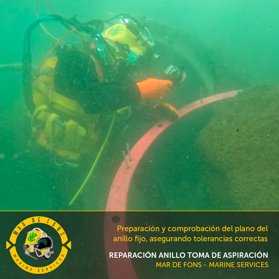 En Mar de Fons – Servicios Marítimos hemos llevado a cabo la reparación del anillo interior de la toma de aspiración de la planta de BASF en Tarragona, garantizando su correcto funcionamiento y fiabilidad operativa.